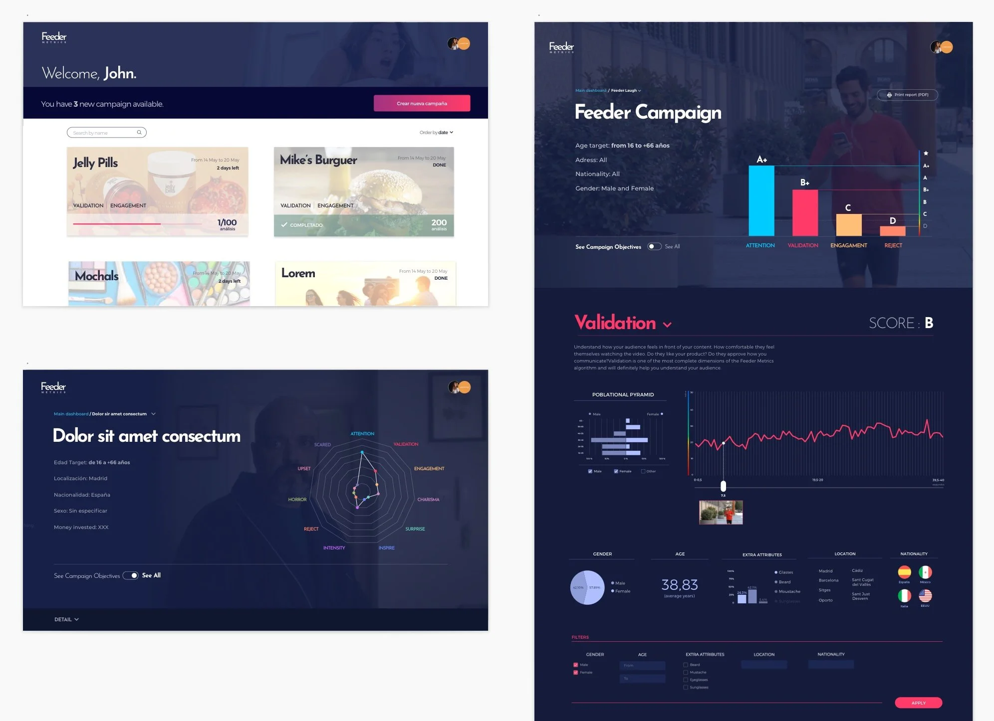 In terms of message and content, the focus would be on Feeder Metrics, the emotional analysis management and visualization platform/dashboard provided by Feeder.