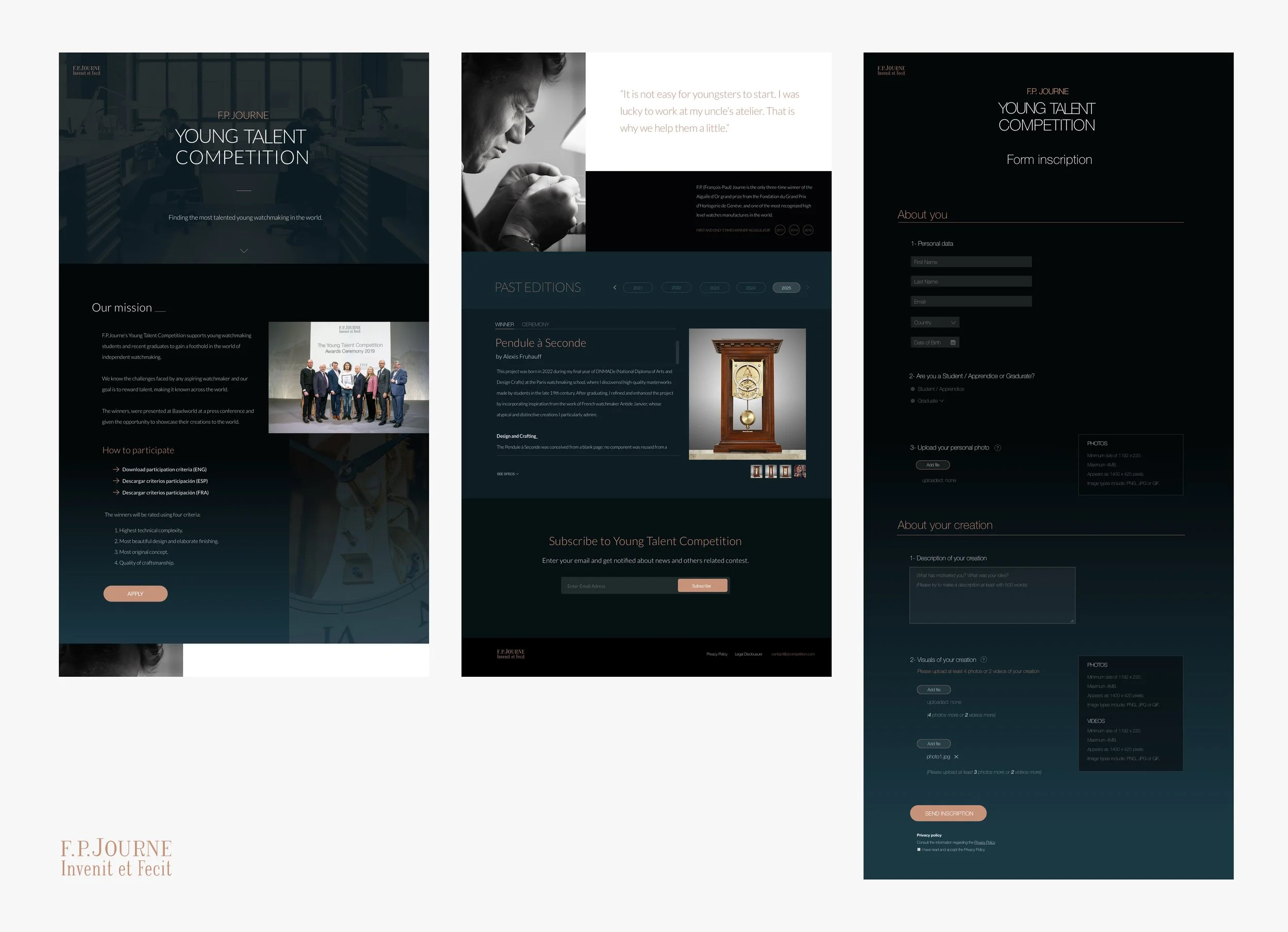 The resulting experience remains consistent with F. P. Journe’s positioning through precise visual hierarchy and a contained interface, where design acts as a support for information and for the institutional character of the competition.